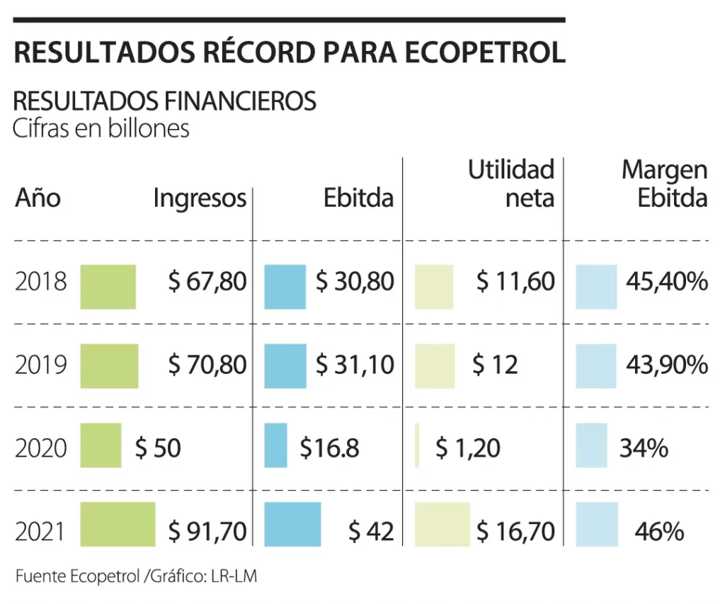 El Grupo Ecopetrol reveló ayer su balance financiero del año pasado: la empresa logró una cifra histórica en utilidades de $16,7 billones. Este resultado está basado en ingresos de $91,7 billones, con un Ebitda de $42 billones. Con esto, Ecopetrol regresa a la racha de buenas cifras. Los resultados superaron con creces las estimaciones preliminares de los principales analistas y el mercado, las cuales preveían utilidades netas de $15 billones.
