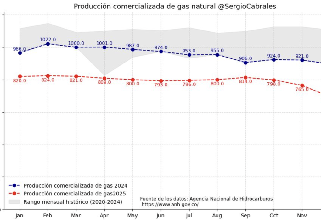 Noticias Producción de gas natural en Colombia cayó más del 17% en 2025 frente a 2024 sergiocabrales febrero 21, 2026febrero 23, 2026